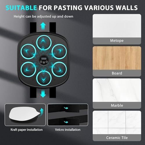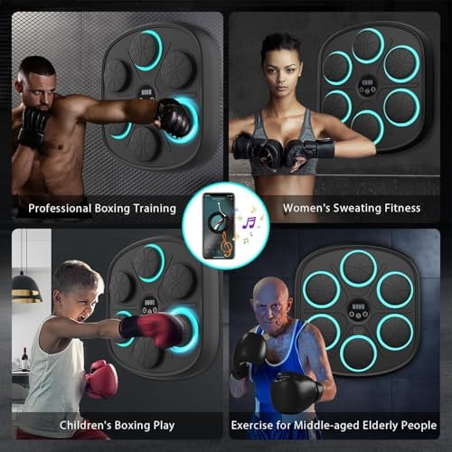 2024 New Smart Music Boxing Machine with Boxing Gloves, Wall Mounted Smart Bluetooth Music Boxing Trainer with LED, Electronic Focus Agility Training Digital Boxing for Adults and Kids