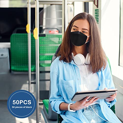 50PCS KF94 Mask Disposable Face Masks - Korean Imported Filter - Individually Wrapped 4 Ply Breathable Comfortable Safety Mask-3D Structure for Larger Breathing Space & Makeup Friendly-Black
