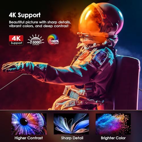 [Electric Focus] 4K Projector with 5G WiFi and Bluetooth, 15000L JOWLURK Projector, Outdoor Movie Projector, Home Mini Theater Portable Projector for iPhone/TV/Android Stick/HDMI/USB/Laptop/DVD/PS5