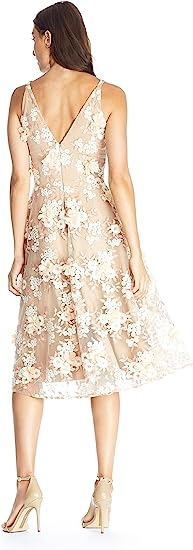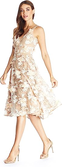 Dress the Population womens Elisa Sleeveless Plunge Neckline Fit and Flare Midi Dress