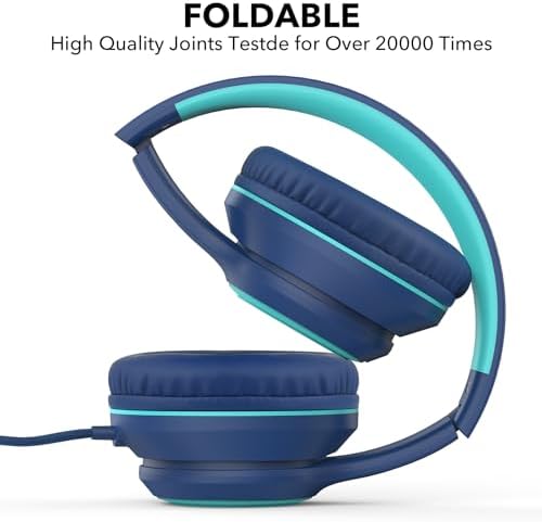 JOMILIN A8 Wired Over-Ear Headphones with Microphone, Lightweight Folding Portable Headset with 1.5M No-Tangle Cord, 3.5mm Plug in Headphones for Smartphone Tablet Computer MP3 / 4 (Blue)
