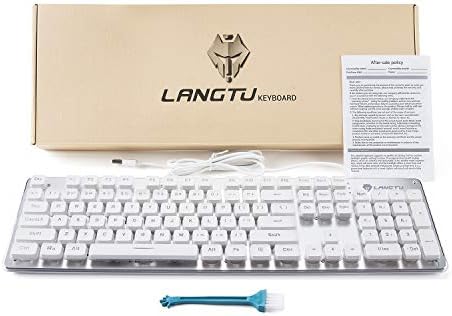 LANGTU Membrane Gaming Keyboard, Rainbow LED Backlit Quiet Keyboard for Office, USB Wired All-Metal Panel 25 Keys Anti-ghosting Computer Keyboard 104 Keys - L1 White/Silver