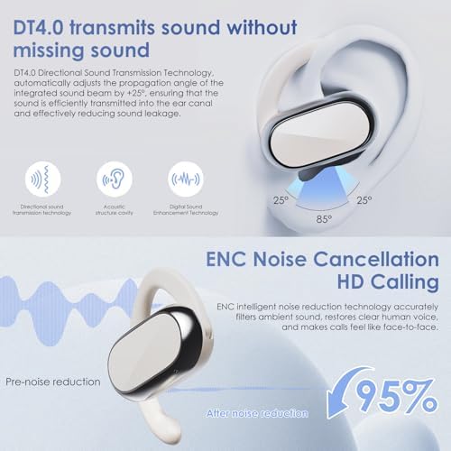 Open Ear Headphones,360-Degree Panoramic Sound, DT4.0 Without Sound Loss,Air Conduction, 48H Range,LED Display,IPX7 Waterproof, Wireless Earbuds for Meeting, Driving,Traveling