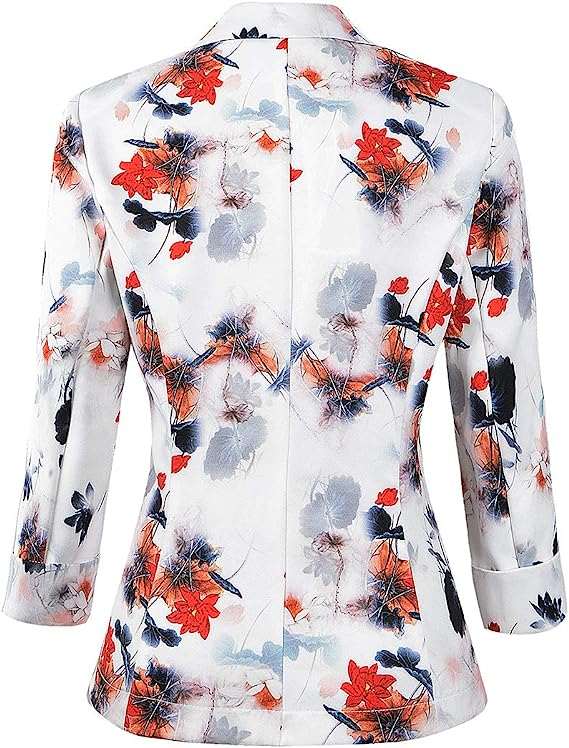 Womens 3/4 Sleeve Lightweight Office Work Suit Jacket Floral Blazer