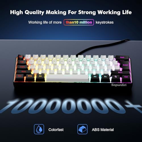 Snpurdiri 60% Wired Gaming Keyboard, 61 Keys RGB Backlit Ultra-Compact Small Gaming Keyboard, for PC/Mac Gamer, Typist, Travel, Easy to Carry on Business Trip(Black-White)