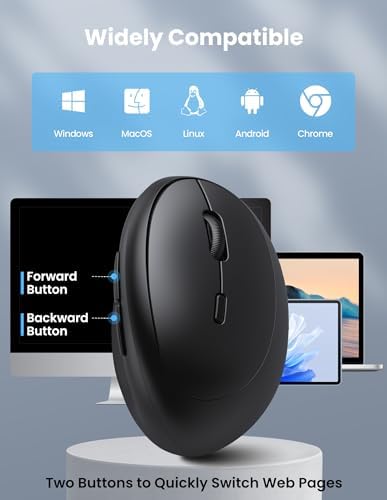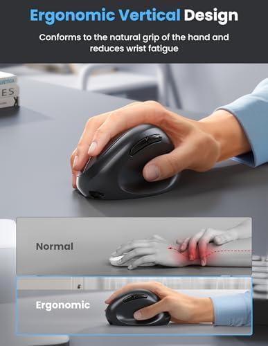 TECKNET Ergonomic Mouse, Bluetooth Wireless Vertical Mouse, Rechargeable Battery, Quiet Clicks, 4800 DPI Adjustable, BT5.0/3.0 & 2.4G Connect, Easy to use, Wide Compatibility - Black