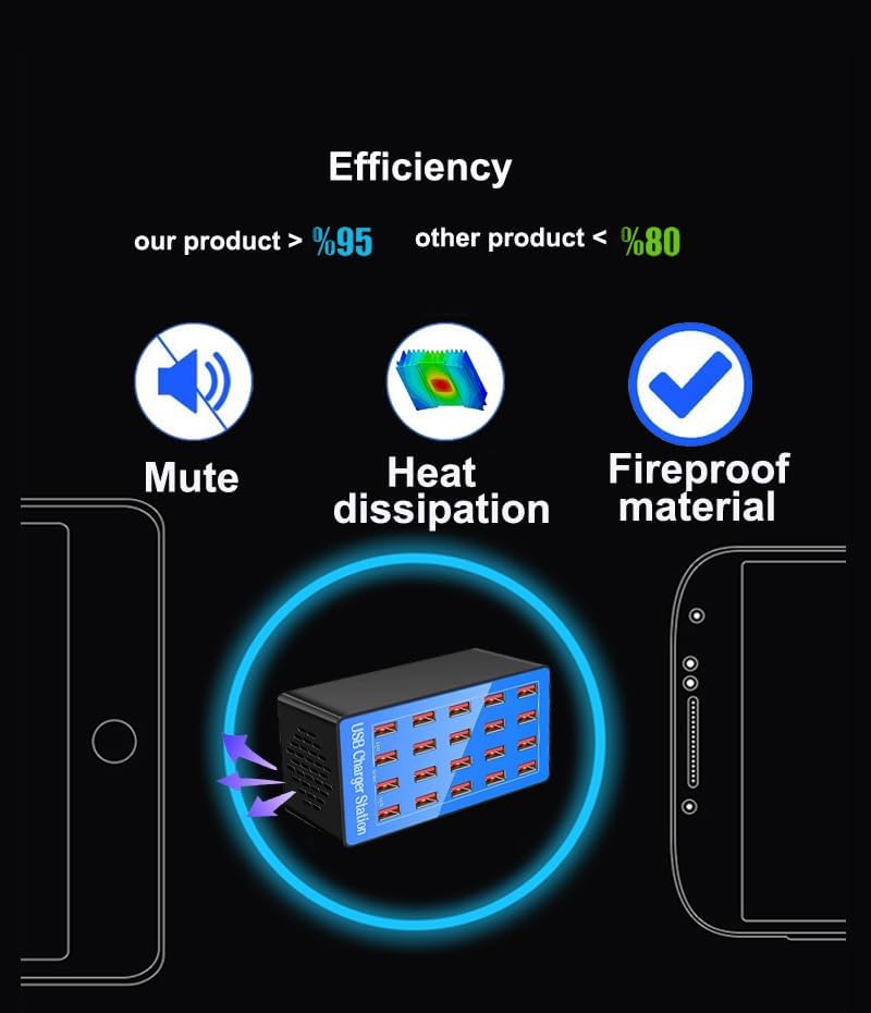 USB Charger Station,20-Port 100W/20A Multiple USB Charging Station,Multi Ports USB Charger Charging for Smartphones,Tablets,and Other USB Devices.
