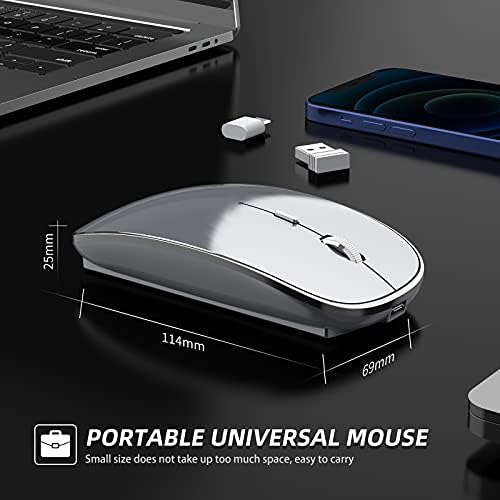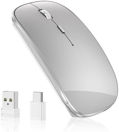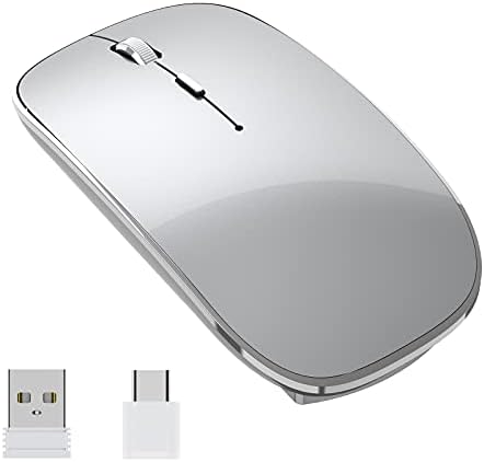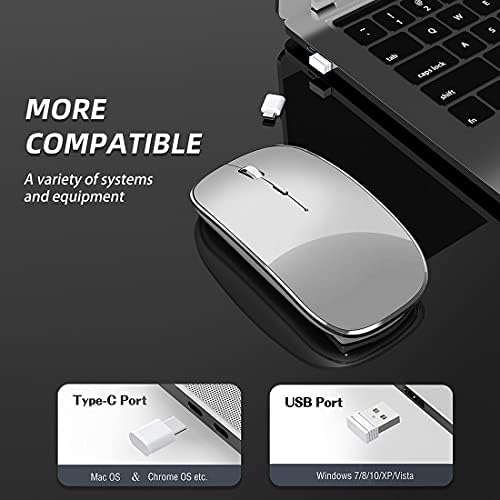 Wireless Mouse Chargeable Portable Silent USB and Type-C Dual Mode Wireless Mouse 3 Adjustable DPI for Laptop, Mac, Android, PC (Q23S Black) (Grey)