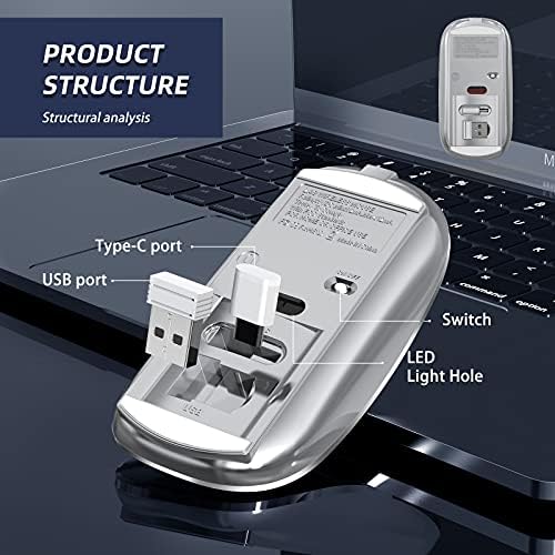• Support Plug and Play: Both USB and Type C receivers are stored on the bottom of the mouse, take them out and plug into the computer’s port, and then it's working, not need to any drives, extremely easy to use.